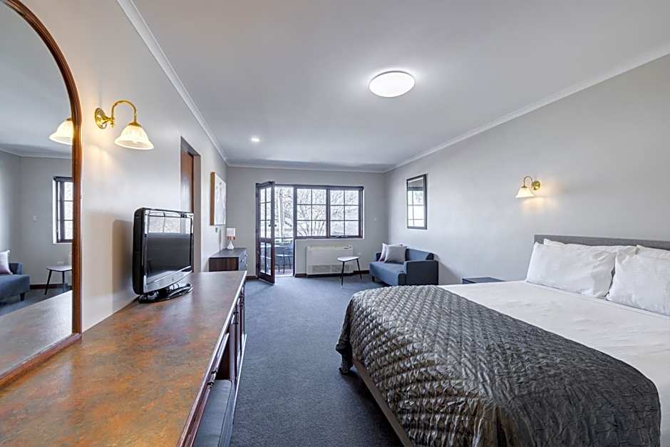 The Deluxe Family Spa Balcony have been refurbished with a touch of modern furnishings. The Deluxe studio is perfect for families or friends traveling together with our new custom Posturepedic made mattresses called cloud beds configurating of Queen Bed and 2 King Singles. With access to your own private balcony with table and chairs to sit back and relax with street views. The bathroom has a two person spa bath. The room is located on the first floor, which is only accessible by stairs.
