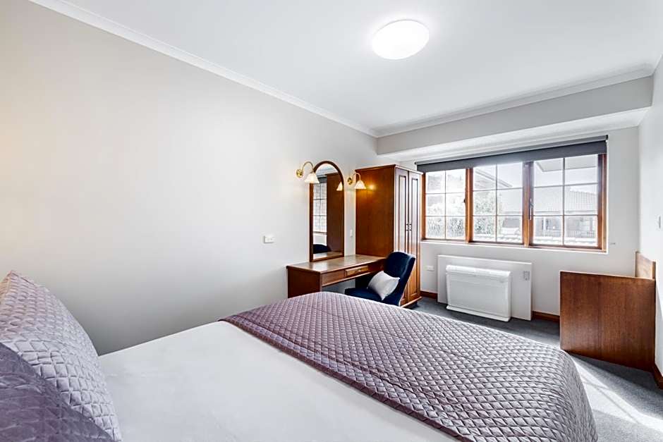 The Deluxe Courtyard has been refurbished with a touch of modern furnishings. The Deluxe studio is perfect for families or friends traveling together with our new custom Posturepedic made mattresses called cloud beds configuring of Queen Bed and 2 King Singles. With access to your own private courtyard with table and chairs to sit back and relax with street views. All guest rooms have a master bathroom with shower over bath. Our Deluxe Rooms are located on the ground floor. Please note this room type is Pet Friendly, an additional AUD 50 pet fee per day applies for each pet. Pet rooms are provided with feeding and water bowls and a large bed.