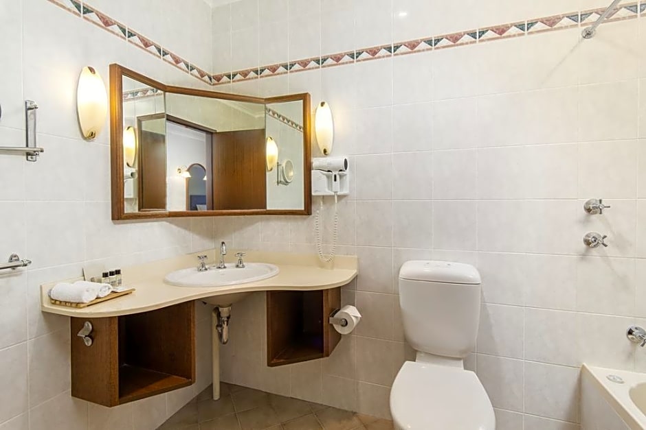 This room type is not pet friendly. The Standard Queen & Single rooms have been refurbished with a touch of modern furnishings. With our popular Queen and Single cloud beds custom made with Posturepedic mattress to ensure a perfect night’s sleep. Our Queen & Single rooms are spacious and perfectly designed for leisure stays when bringing along an extra person. All guest rooms have a master bathroom with shower over bath. Our standard queen and single rooms are located on both the ground floor and first floor and can be requested at time of booking, with first floor rooms only accessible by stairs. Street facing or Back facing rooms available and can be requested prior to arrival (subject to availability).